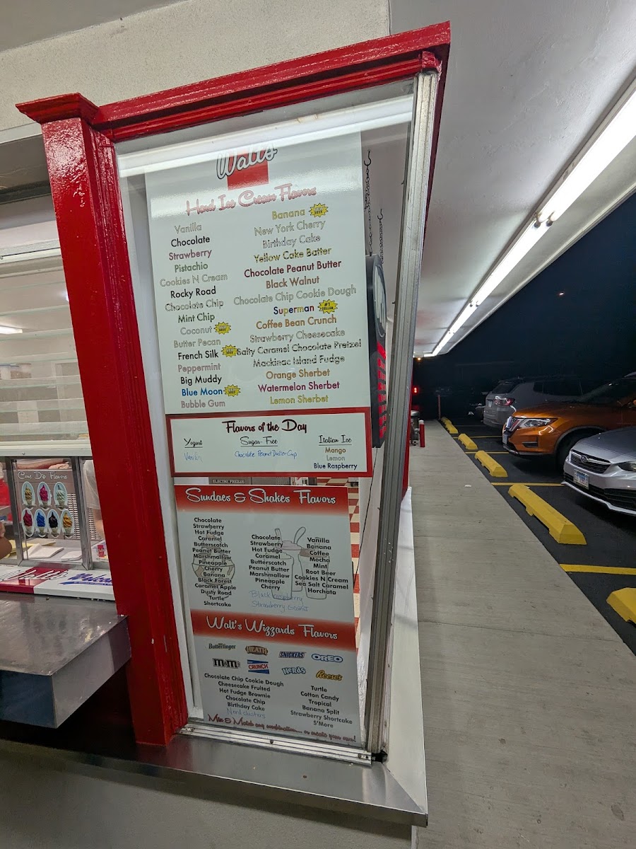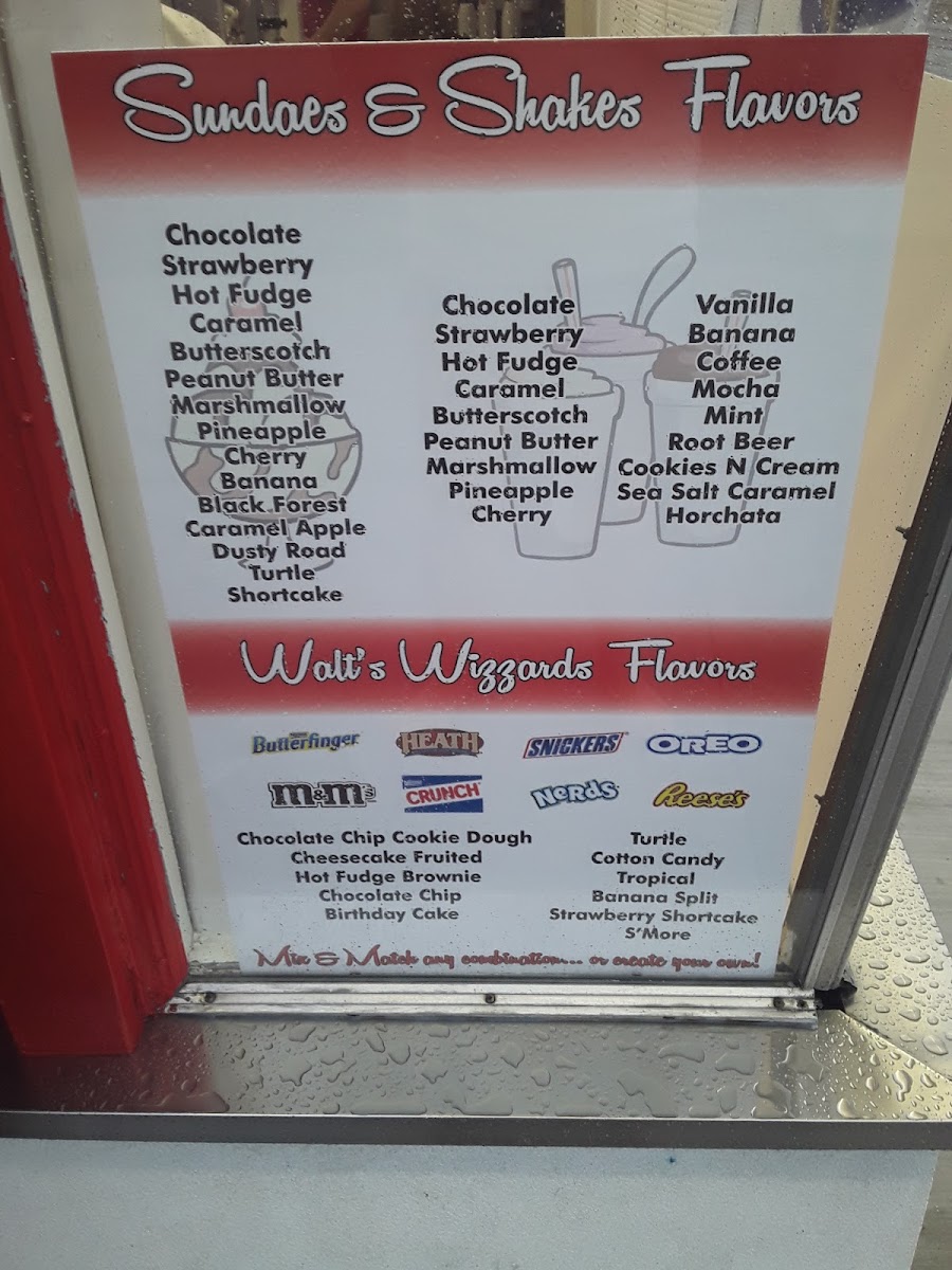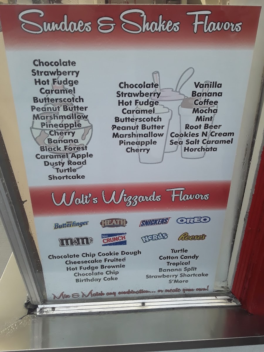The Original Walt's Ice Cream Menu