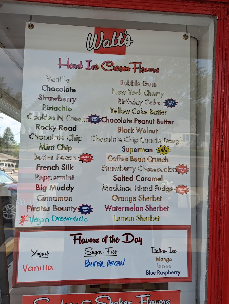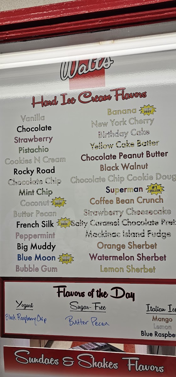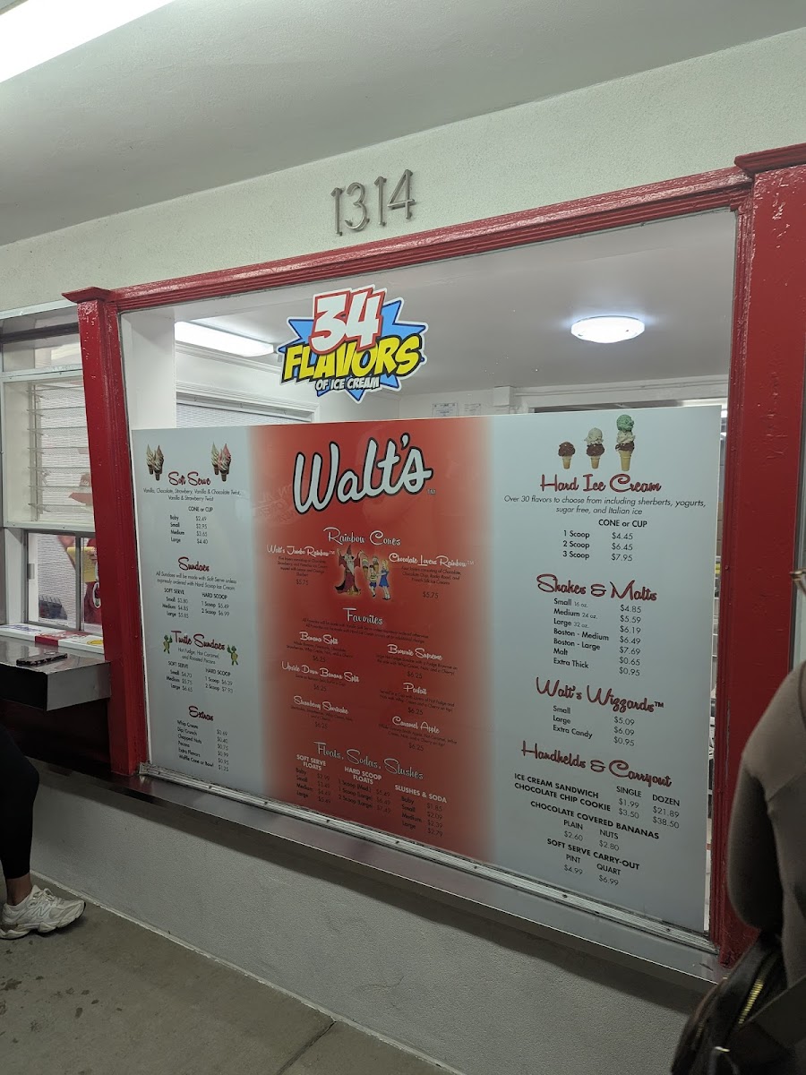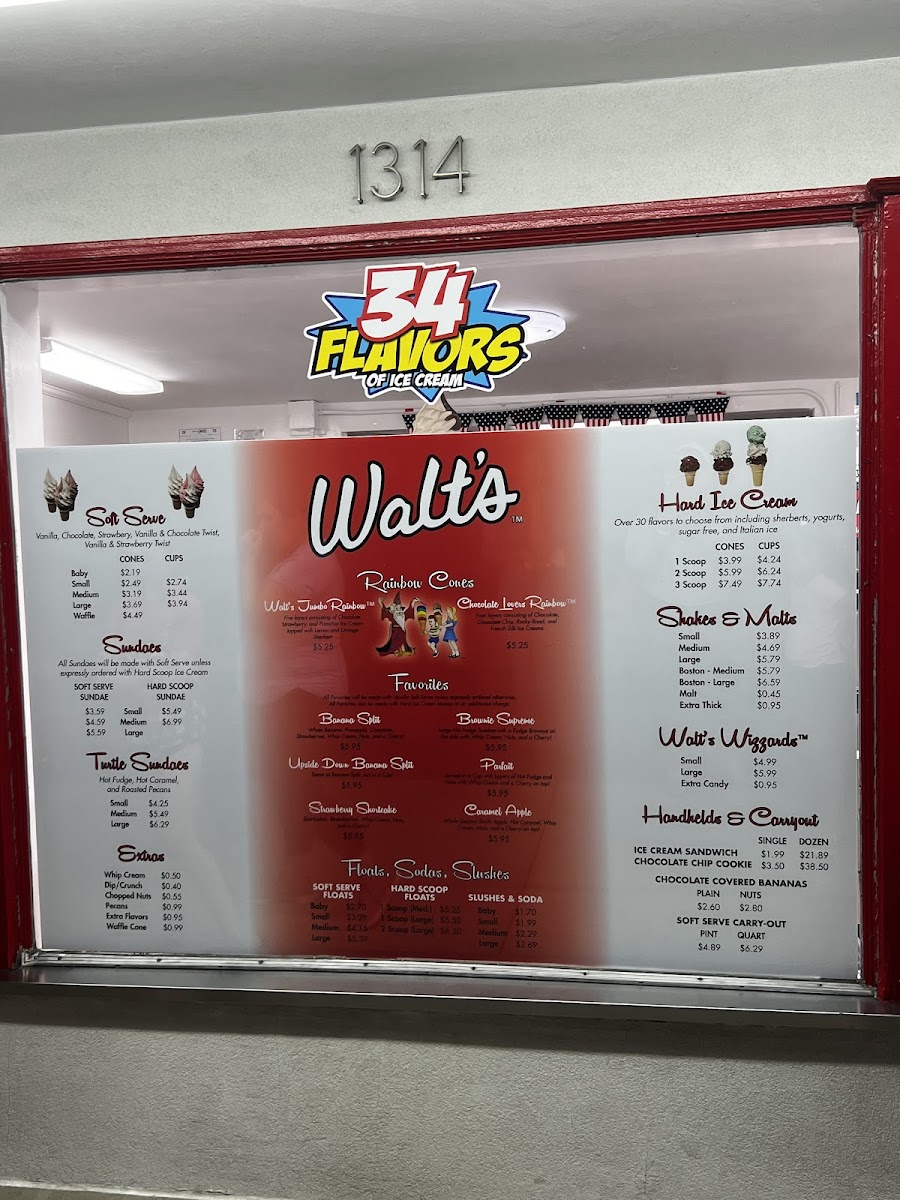 The Original Walt's Ice Cream Menu